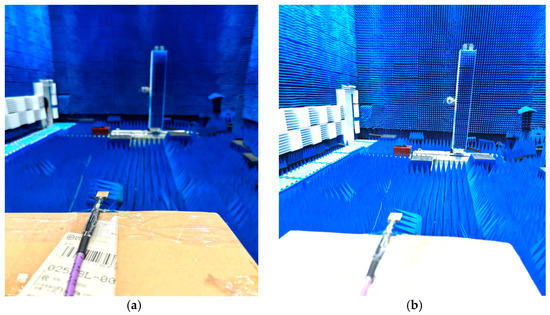 (a,b) Antenna under test (AUT) environment of anechoic chamber.