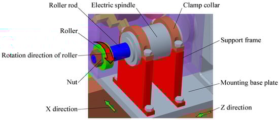 As shown in Figure 7, the roller truing device of the conductive grinding wheel is mainly composed of a mounting base plate, support frame, clamp collar, electric spindle, roller rod, and roller.