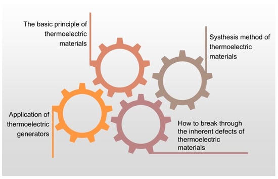 Novel materials could be invented to enhance the ZT of thermoelectric materials further. Interestingly, various materials with superior ZT have been discovered. For example, SnSe [,,,,] and Mg-based materials [,]. Moreover, in specific scenarios, the importance of flexible thermoelectric materials is gradually being reflected, and the rapid development of organic thermoelectric materials provides a prerequisite for it [,,,].