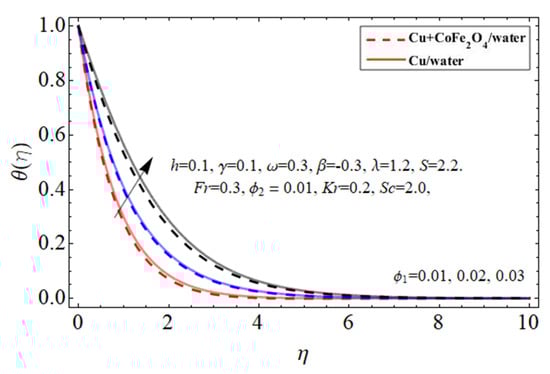 - Ramesh, G.K.; Madhukesh, J.K.; Prasannakumara, B.C.; Shehzad, S.A.; Abbasi, F.M. Thermodynamics Examination of Fe3O4-CoFe2O4/Water+ EG Nanofluid in a Heated Plate: Crosswise and Stream-wise Aspects. Arab. J. Sci. Eng. 2021, 47, 8351–8360. [Google Scholar] [CrossRef]
