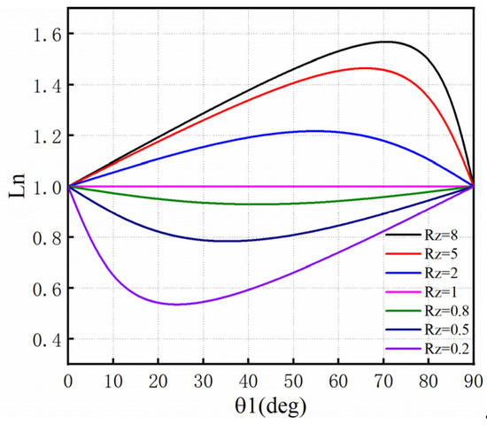 Figure 3 is the curve graph between the normalized resonator length and the electric length when the impedance ratio RZ is different. According to Figure 3, in the process of designing filters using SIR, a smaller impedance ratio should be chosen so that the filter size can be reduced and the original transmission performance of the resonator can be maintained as much as possible. In the design process, the commonly used impedance ratio = 0.8 [23].