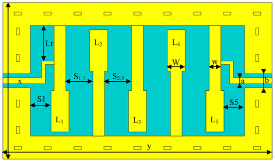 Two-dimensional structure of the fifth-order interdigital filter.