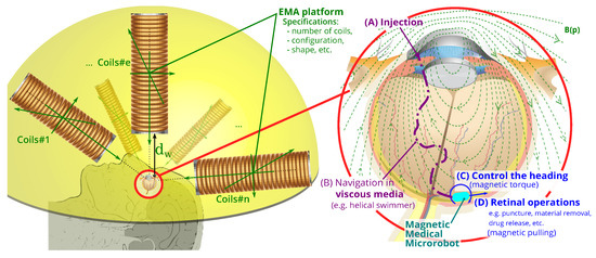 Even the most skilled surgeons have involuntary physiological tremors, which causes most ophthalmic surgeries to be at the peak of human capabilities [5,6,7]. To improve the surgeon’s performance, various robotic technologies have been involved [4,8,9,10,11]. Although most of these current robotic solutions improve the quality of ophthalmic surgery, the invasiveness of the procedure is not fully reduced. The use of untethered magnetic microrobot is a promising alternative to enhance the overall ophthalmic MIS operations.