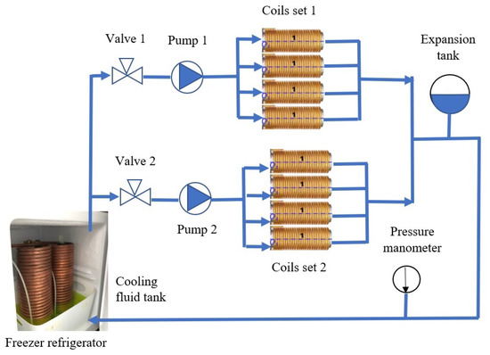 Next, the coil thickness should be determined. From the infinite solenoid (6), the best magnetic performance is achieved when the number of turns (N) is maximized. However, the winding of coil is limited by the current density that could cause a safety issue. Basically, from transformer design, without cooling, it is shown that the current density should not exceed . Nevertheless, to enable a strong magnetic field, the current must be high enough. Therefore, the parameter of normally requires the wire to be made of a larg cross-section of conductor, which will limit the number of turns N. In order to increase together with a great N in a limited room, a cooling system will be mandatory. Different strategies can be envisioned for the cooling part, such as using a fan, a radiator vent or a water/coolant system. Classically, using a circulating coolant is the most effective technology for cooling a system.