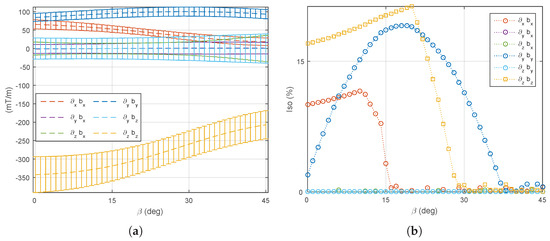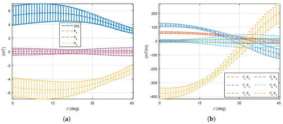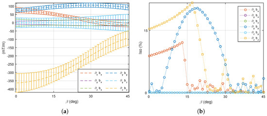 As mentioned in Section 3.1, the magnetic field can be expressed in the reference frame linked to the workspace center by using the homogeneous transformation, as in Equation (2). Similarly, the input angle is transferred to the output angle through applying transformation matrices. For more details of analysis of its definition of transformation, please see Appendix A.