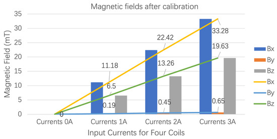 with being the applied electrical currents. This relation (3) shows that the induced magnetic field and its gradient in the workspace can be adjusted by controlling the flowing currents . When the electromagnet is dynamically moved, either the magnetic field or the gradient can be favored.