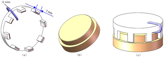 As illustrated in Figure 1, the assembly of an optic-mechanical device requires combining a claw framework as depicted in Figure 1a and a mirror as depicted in Figure 1b, forming the component shown in Figure 1c. To achieve the corresponding function, a wire is required to weld the outer and inner layers of the claw framework. However, to place a wire without compromising the assembly, it is necessary to cut out some sections of the claw framework. As a result, the framework is composed of multi-section arcs. Therefore, the framework can consist of three or more arc segments. In this study, we focus on the claw framework with micro eight-section arc structures as an example, with the length of each arc section being less than 3 mm.