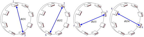 As illustrated in Figure 12, ΦD1, ΦD2, ΦD3, and ΦD4 represent the diameters of the arcs in the opposite direction. In manual inspection, a vernier caliper was typically used to measure the dimensions of the arcs in opposite directions to determine whether they met the assembly requirements. However, due to arc deformation, even if the four grouping diameters meet, the parts may not satisfy the assembly requirements. For instance, when the arcs of Nos. 1 and 5 have large deformations in the same direction, the part cannot be assembled with the mirror, even though the diameter of ΦD1 meets the design requirement. Therefore, only the dimensions of the arcs in opposite directions can easily lead to false detection.