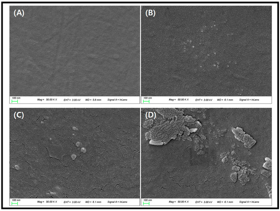 SEM images of samples. (A) REF, (B) G1, (C) G5, (D) G10.