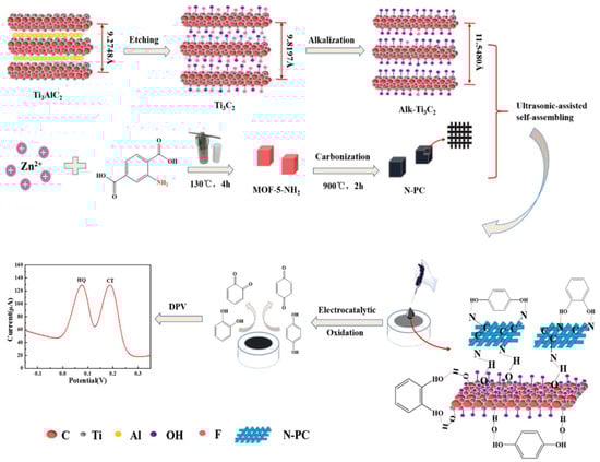 Schematic description of the preparation and application of alk-Ti3C2/N-PC/GCE []. Reprinted with permission [].