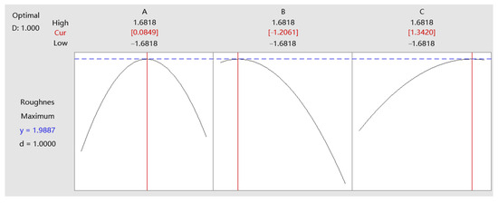 ΔRa = 1.85 + 0.25 A − 0.17 B + 0.044 C − 0.26 A2 − 0.13 B2 − 0.07 C2 + 0.15 A × B − 0.03 A × C − 0.12 B × C