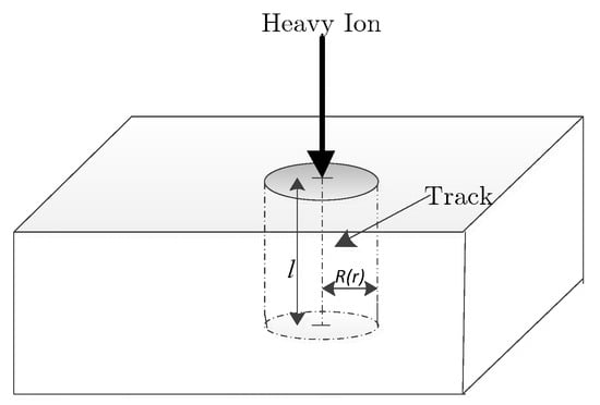 Figure 16 shows the incidence of heavy ion at different angles of incidence. In the model established herein, the heavy ion incidence path is a cylinder, and the cylinder volume can be expressed as: