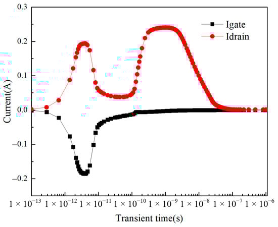 Figure 7 shows the relationship between gate current and drain current with time when heavy ion is incident at point f. It can be seen from the figure that at the moment of the appearance of the first peak (between 1 × 10
