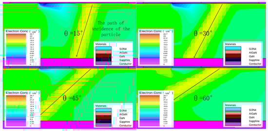 14]. Hu et al. simulated heavy ion radiation at different incidence angles through software simulation and found that the most serious incidence of the device was not from the vertical incidence at the end of the field plate but from the low angle incidence in the middle of the field plate [