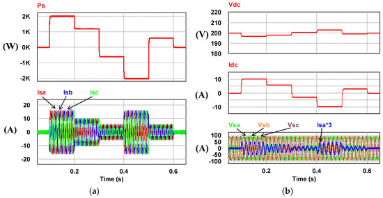 This case is implemented to verify the simulation results of case 1. Figure 21 shows the operation and power flow of this operating mode. A set of typical measured results of this operation is presented in Figure 22.