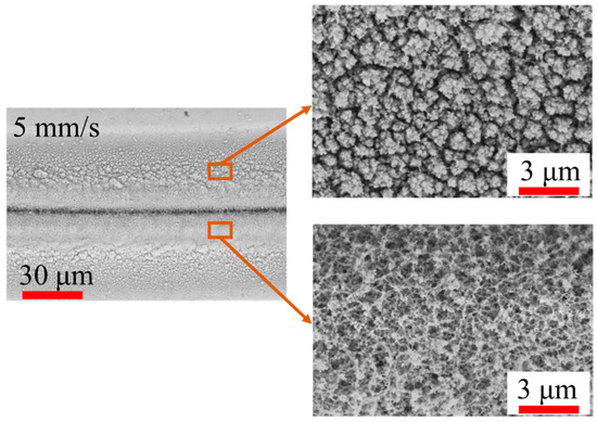 SEM images of produced SiO2 at 5 mm/s laser scanning speed.