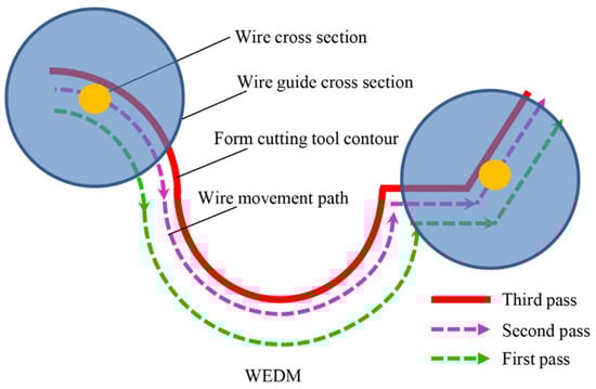 - Chen, Z.; Huang, Y.; Zhang, Z.; Li, H.; Ming, W.Y.; Zhang, G. An analysis and optimization of the geometrical inaccuracy in WEDM rough corner cutting. Int. J. Adv. Manuf. Technol. 2014, 74, 917–929. [Google Scholar] [CrossRef]