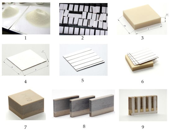The production process of multi-element piezoceramic actuators is shown in Figure 7 and consists of the following steps: