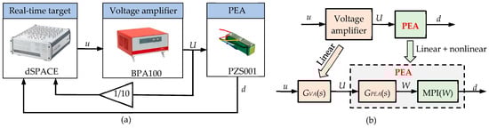 (2) Identification of the PEA’s hysteresis. As shown in Figure 1b, the PEA’s hysteresis is modeled into a series connection of GPEA(s) and MPI(W). After a trial and error process, it is found that a higher modeling accuracy can be obtained if GPEA(s) and MPI(W) are identified individually.