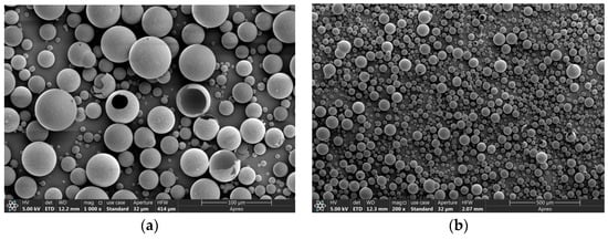 Figure 10 shows the SEM images of K1 type hollow glass microspheres with a mass fraction of 20%. Figure 10a shows that some of the microspheres were broken due to extrusion by the centrifugal force generated during stirring, but most of them remained spherical. And Figure 10b shows that the distribution of the hollow glass microspheres was very homogeneous, which indicates that homogenization effect was good.