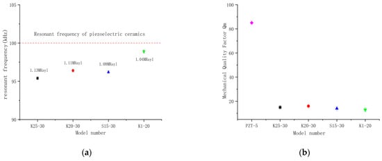 Changes in mechanical behavior before and after optimization. (a) Homemade transducer impedance test; (b) Mechanical quality factor test of Homemade Transducers.