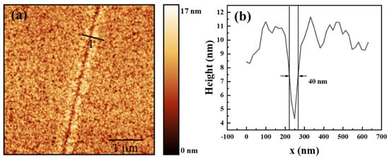 For the lithography process, a 60 nm thick photoresist AR3170 was uniformly spun on the surface of the silicon substrate, maintaining roughness within 1 nm. The metal block with the PL pattern was affixed to a cantilever, and 355 nm ultraviolet light was illuminated, and focused down to a few micrometer spots on top of the PL while rotating the Si disk to achieve exposure. After the pattern exposure followed by 2.38% tetramethylammonium hydroxide (THAM) development, the resulting features were then examined using an atomic force microscope (AFM, bruker icon dimension, Germany) and shown in the Figure 8.