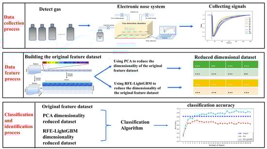 Flowchart of the contaminant classification approach based on the RFE-LightGBM algorithm using electronic nose.