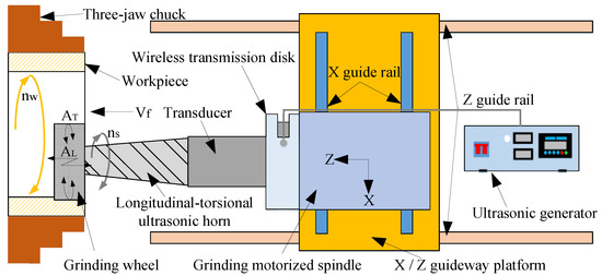 A large number of research and experimental results show that compared with ordinary grinding, longitudinal-torsional ultrasonic vibration-assisted grinding can effectively solve the problems of grinding wheel blockage and grinding burn, reduce grinding force, improve grinding quality and grinding efficiency, and prolong tool life [26,27].