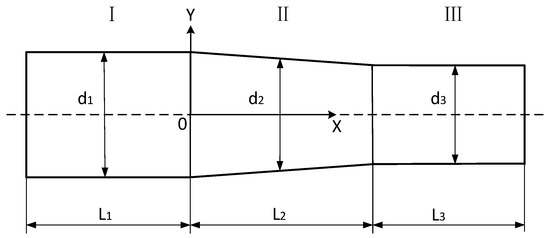 From Figure 2, the diameter of the conical transition section II can be expressed as: