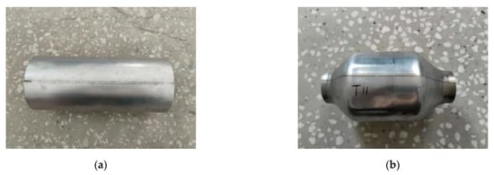Appearance of laser-welded tubular parts prepared with 0.60 mm spot diameter (a) before and (b) after spinning.