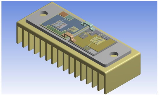 Typically, a power module is composed of IGBT chips and diode chips, which act as the heat sources that contribute to the entire heat flow inside the module. Figure 2 demonstrates a commercial power module (SKM75GB123D) made by SEMIKRON, where one IGBT chip and one free-wheeling diode chip are combined in parallel on each substrate tile. Generally, the temperature of an IGBT chip on one single substrate tile is influenced by the adjacent diode chips. In this paper, due to the long distance between the IGBT chip and the diode chip, cross-coupling is relatively small and, thereby, is ignored. As a result, only the self-heating of the IGBT chip is considered in the modeling process.
