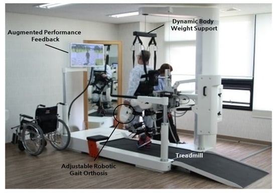 - Choi, W. Effects of Robot-Assisted Gait Training with Body Weight Support on Gait and Balance in Stroke Patients. Int. J. Environ. Res. Public Health 2022, 19, 5814. [Google Scholar] [CrossRef] [PubMed]