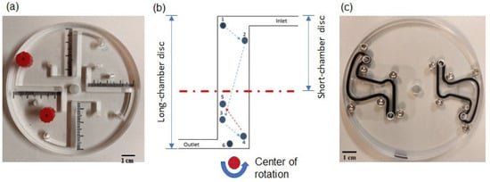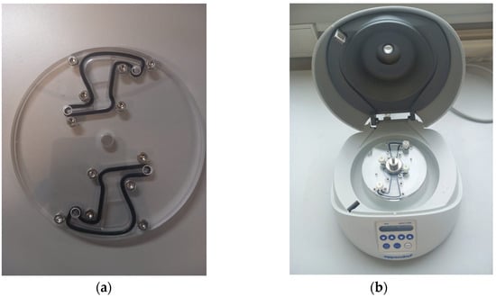 Figure 5 presents photographs of the modified reversible bound short-chamber LOD device and a customized mini centrifuge (Eppendorf® Centrifuge MiniSpin G; Eppendorf, Hamburg, Germany) [,] containing a reversibly bonded long-chamber LOD device.