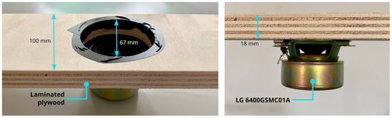 It is worth noting that, in Table 1, the SNR, sensitivity, and AOP values for the mic “7BB-35-3L0” are missing because this component is used for general applications (vibration monitoring, sound detection, buzzer, haptic feedback, etc.), both as a sensor and as an actuator, so it is not specifically characterized for audio applications. More details are in the following subsections.