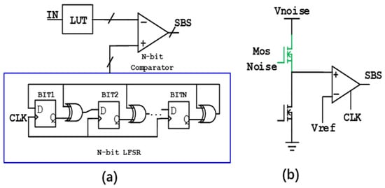 (a) LFSR-based PSNG. (b) MOS noise-based SNG.
