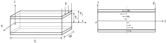 Transverse stress is created by the relative movement of the piezoelectric film cantilever beam’s free and fixed ends. By combining Equations (3), (6), and (8), the stress distribution σ2 on the PVDF piezoelectric film with the end load F can be expressed as: