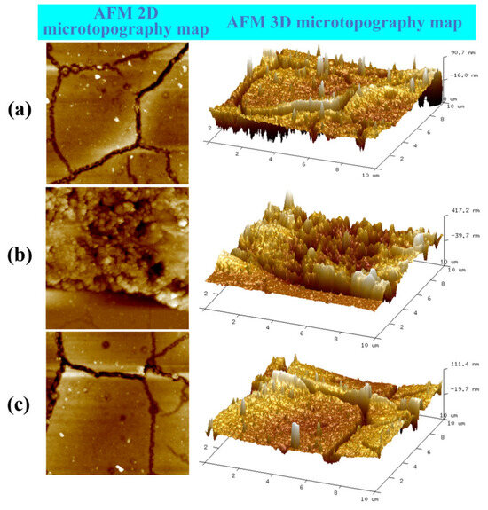 Micromorphology observation derived using AFM. (a) Resistance gate; (b) strain gap; (c) transition layer.
