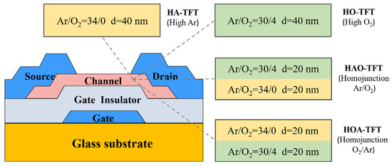 A schematic diagram of ZTO TFT with single/homojunction channel.