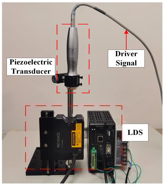 The laser displacement sensor (LDS) was set with a sampling frequency of 392 kHz and a measurement range of ±0.5 mm. The data were transmitted to the laptop by the RS-232 interface.