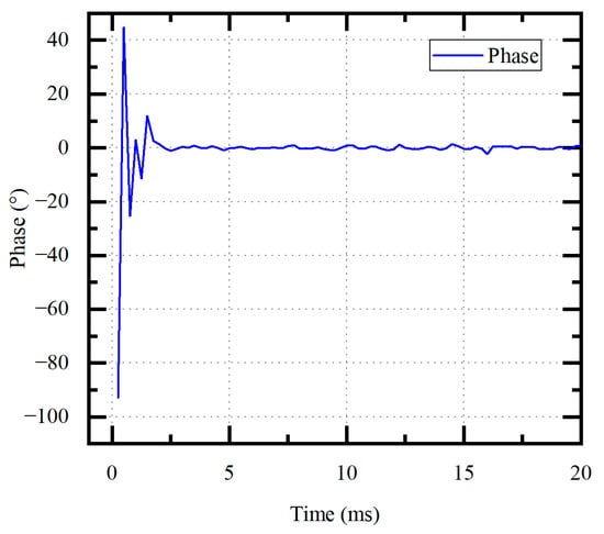Transient behavior is also critical to the performance of ultrasonic scalpels. The tip will contact different tissues during surgery, and a fast build-up time is needed to avoid thermal spread. The build-up time is measured by changing the load. Pure glycerol is commonly used to mimic blood and tissues. The ultrasonic scalpel is rapidly inserted into the glycerol to measure the phase signal, as shown in Figure 12. It takes only 3 ms to converge to a stable value, which verifies the fast stability and good transient characteristics of the system under variable load conditions.