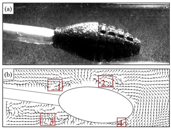 Experimental and simulation reference diagrams (position 1–4 are vortex areas). (a) experimental diagram; (b) simulation diagram.