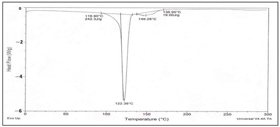 For DSC tests the drug, the DSC TA 60 Shimadzu thermal analyzer was utilized. To calibrate the instrument, high purity indium metal was used as a reference. The scans were conducted under a nitrogen atmosphere at a heating rate of 10 °C per minute [].