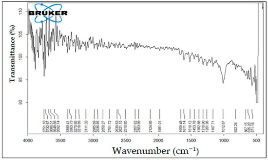 FTIR spectroscopy (Perkin Elmer, Rodgau, Germany) was employed to ascertain the contribution of the functional groups of Qu-AgNPs. This analysis was carried out at a resolution of 4 cm−1, utilizing a KBr disk.