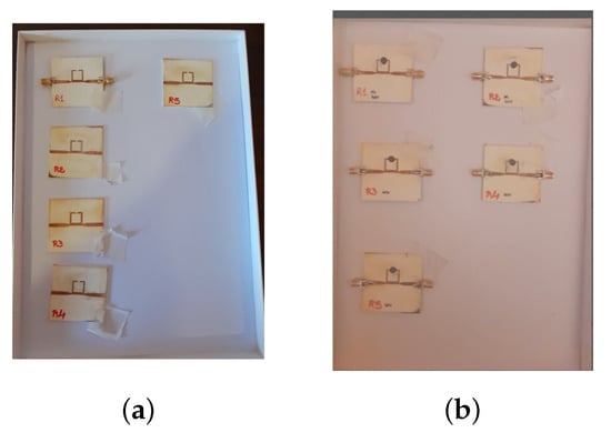 Five prototypes of the resonator are fabricated and measured (Figure 8). Two of them were used for drop volume analysis; the other three were used for the experiments with glucose oxide. After the deposition of the graphene film across the gap, the resonators resonate at the frequency of 3.8  GHz as shown in Figure 9.