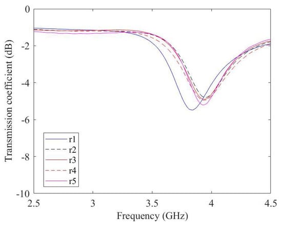Figure 17. Measured transmission coefficient after washing prototype r5 for different glucose concentrations.