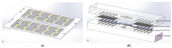 Three-dimensional simulation model. (a) Three-dimensional model of the lead frame; (b) Three-dimensional explosion diagram of the model.