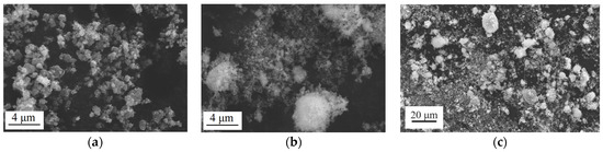 Morphology of ceramic powders: (a) powder of TiO2; (b) powder of ZrO2; (c) powder of 30% TiO2 и 70% ZrO2 (3-IL).
