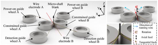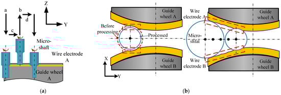 - The tangential feed path of the micro-shafts should be the symmetrical centerline of the narrow slit formed via the twin–mirroring–wire electrodes;