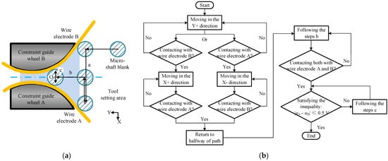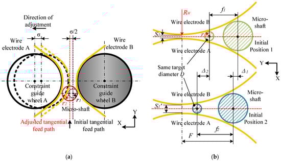 - In the TMTF-WEDG process, the narrow slit formed via twin-mirroring-wire electrodes can geometrically constrain the micro-shaft diameter arbitrarily by controlling tangential feed distance. The geometric constraint strategy includes the tool-setting method, the tangential feed distance compensation, and the equation for the relationship between tangential distance and diameter variation;