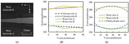 - Jia, J.Y.; Wang, Y.Q.; Li, Z.; Yang, S.Q.; Qian, J.; Reynaerts, D. Accuracy improvement of micro-shafts fabricated by the twin-mirroring-wire tangential feed electrical discharge grinding. J. Mater. Process. Technol. 2020, 286, 116808. [Google Scholar] [CrossRef]